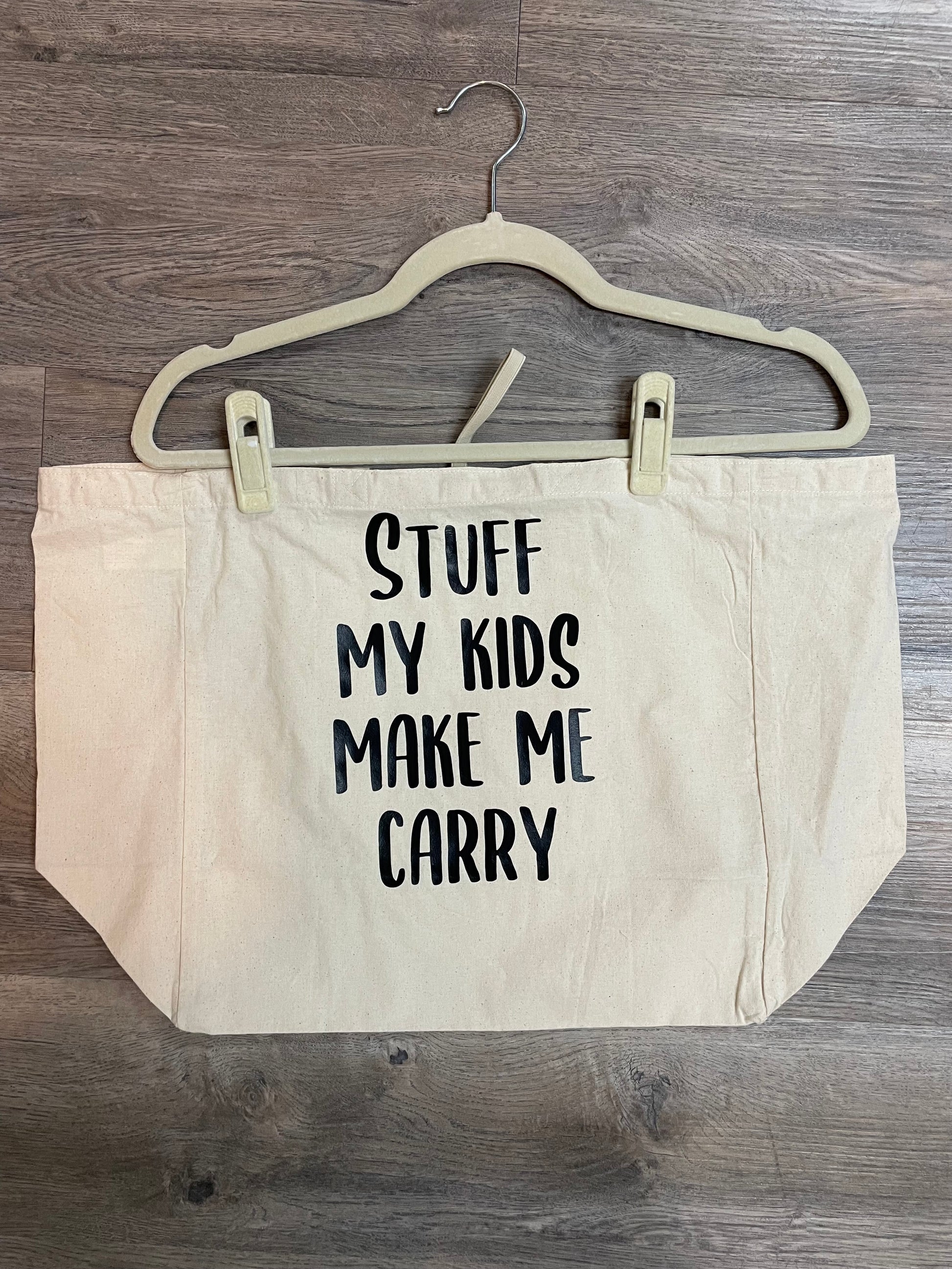 Stuff my kids make me carry tote bag.