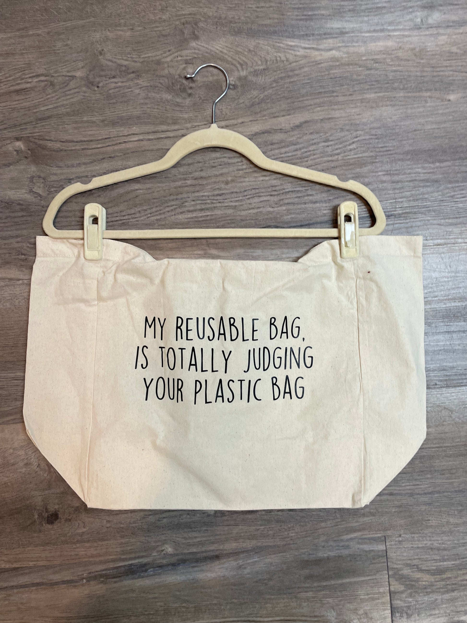 My reusable bag is totally judging your plastic bag tote bag.