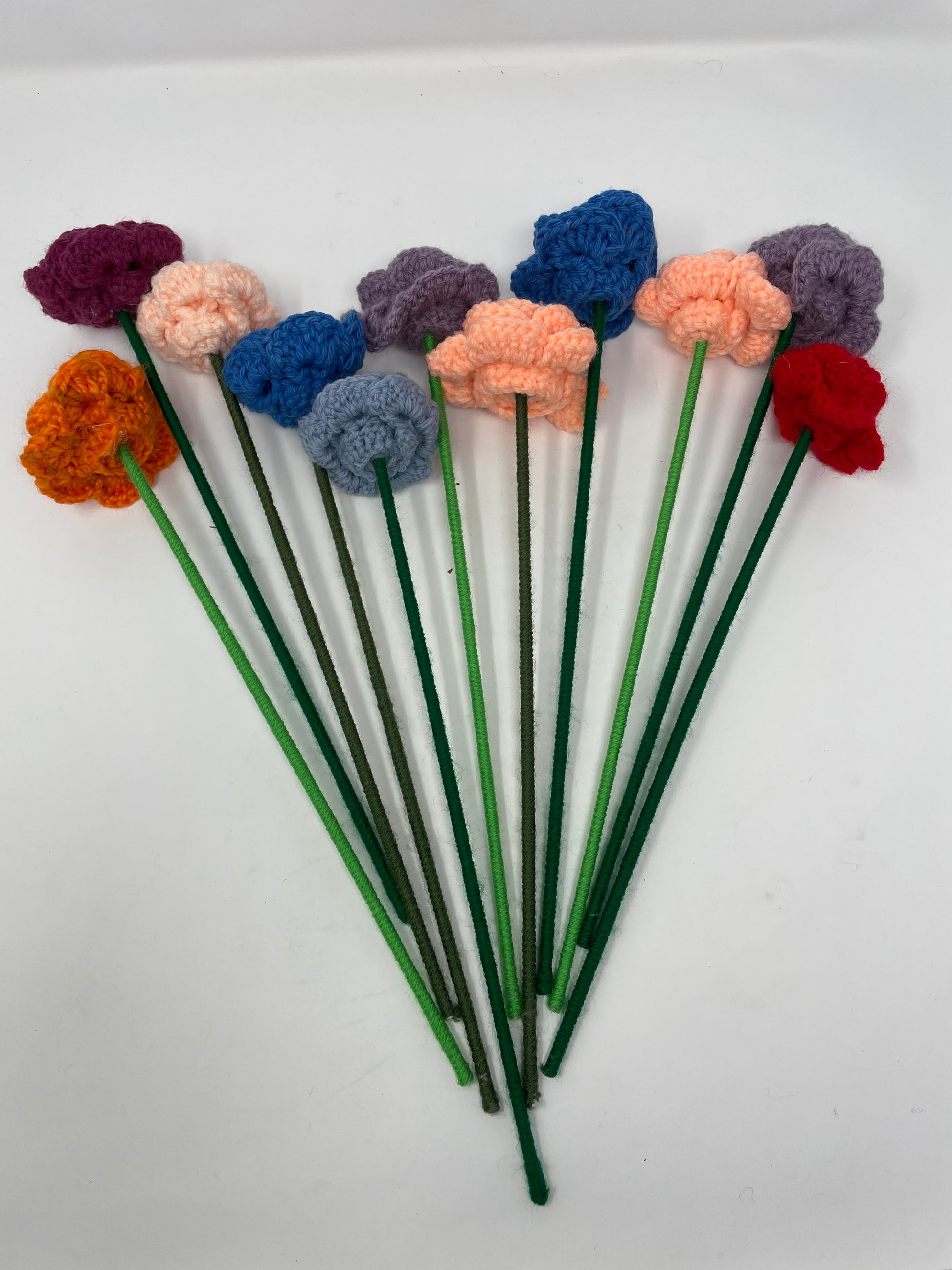 Beautiful crochet roses on a wooden stick!